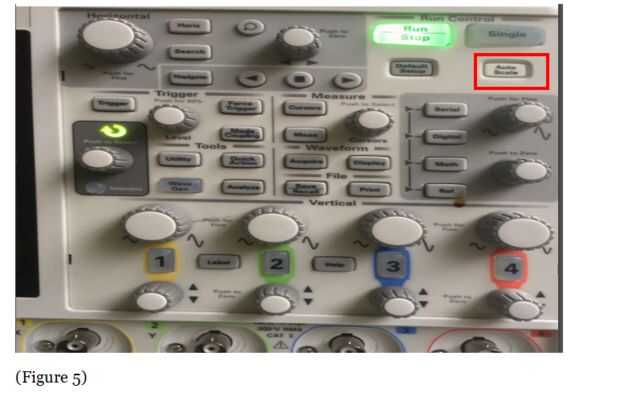 4 haga clic en el botón "Escala automática" en la esquina superior derecha del área de función. (Figura 5) Ahora debería ver una onda senoidal señal en el área de la pantalla (Figura 6)