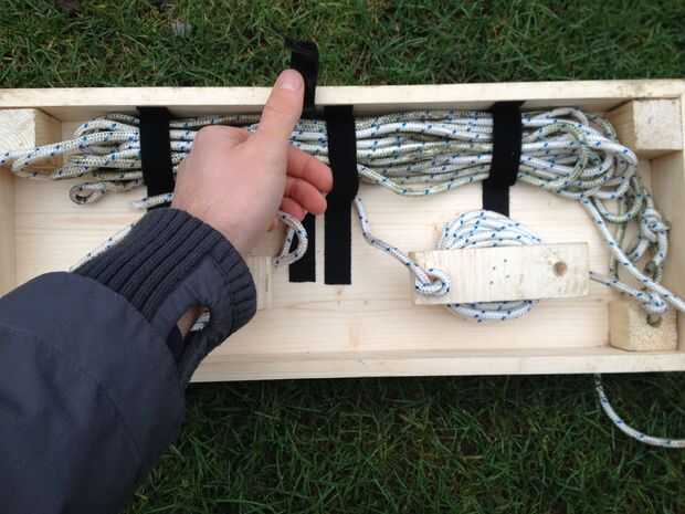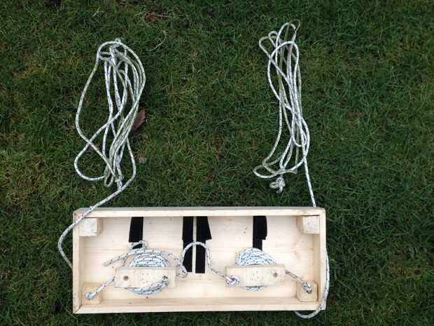En primer lugar usted necesita obtener las cuerdas de la oscilación. Para esto tienes que aflojar la cinta de gancho y lazo. Después de esta endecha las cuerdas tendido frente a la oscilación.