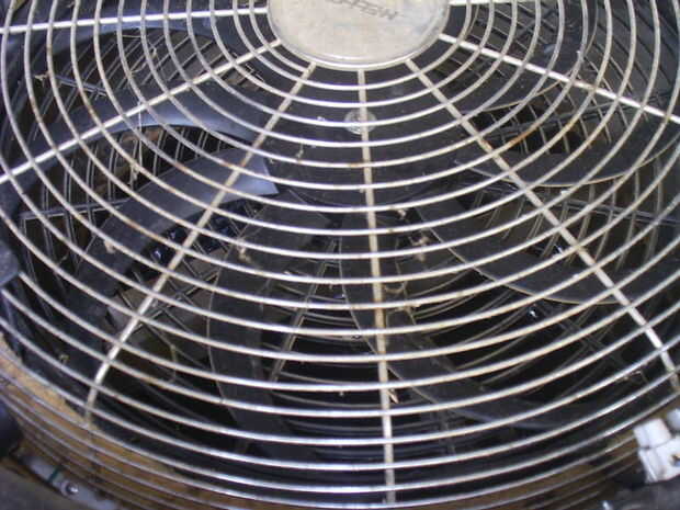 Pienso montar la cubierta del cable de un ventilador viejo sobre la parte superior del ventilador para mantener las ranas de la fan.
