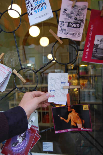 Ir a la cafetería "Morder" en Borsigstr. / Torstr. 10115 Berlín Mitte en Alemania (Google Maps) y pick up para liberar un "¿es social?" -tatuaje desde la puerta exterior o interior de contador. (Volantes están fuera en la puerta principal, aún cuando el café está cerrado).
