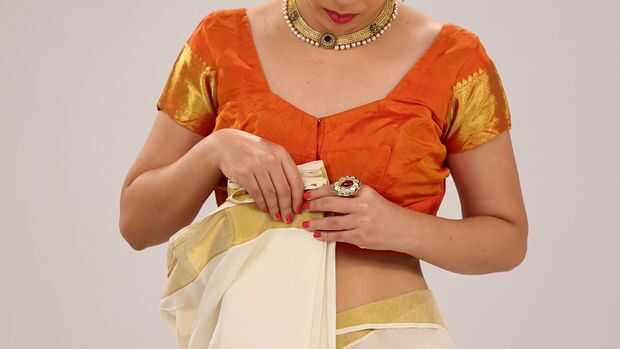 Cómo usar estilo de Kerala sari paso a paso - Sari rápido Tutorial de drapeado (2 / 4 paso)