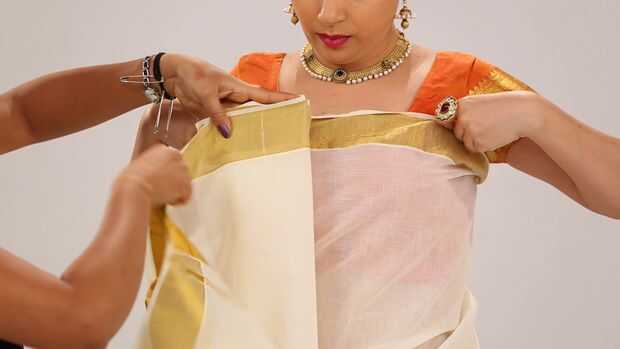 Cómo usar estilo de Kerala sari paso a paso - Sari rápido Tutorial de drapeado (3 / 4 paso)