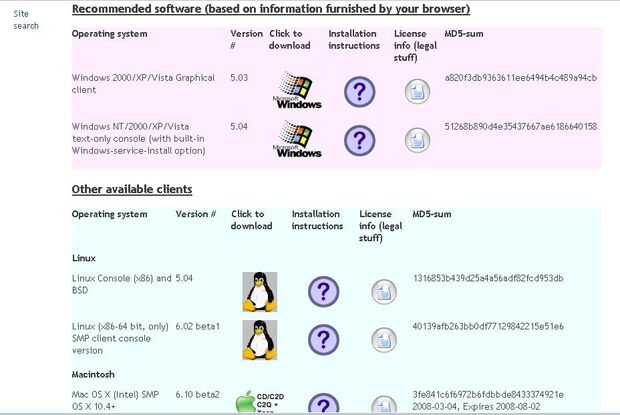 Primero, th, visite y haga clic en descargar. Entonces, basado en información enviada por el navegador, determinará al mejor cliente para usted. Tengo Windows XP, recomienda que a mí. Tiene clientes para Mac y Linux.