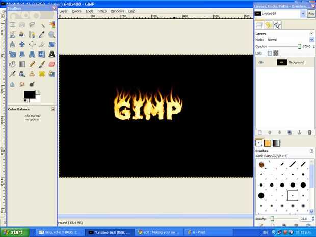 Primero, combinar la capa de fuego con el fondo (clic derecho el fuego de la capa en el cuadro de capas y haga clic en combinar hacia abajo)
