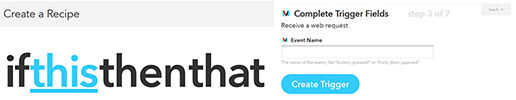 Haga clic en el enlace "Mis recetas" y "Crear una receta" del sitio web. Para "Esto" que elija el canal fabricante y definir un nombre de evento (ver la primera foto).