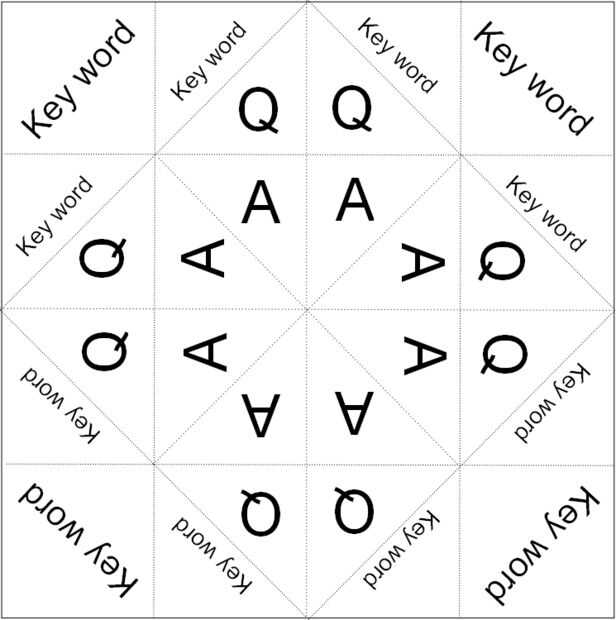 Debajo de cada una de las solapas interiores del adivino, su clase debe escribir una pregunta y una respuesta.