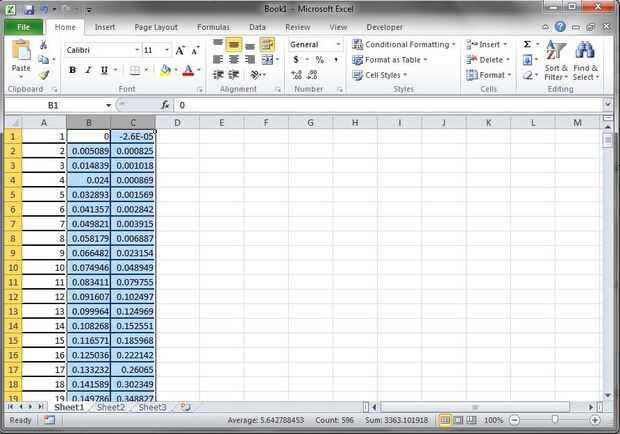 Ahora que la tabla en Excel, y los números son correctos, usted querrá poner en un gráfico. Para hacer eso, usted querrá seleccionar los datos que desee en la hoja de cálculo. Seleccionar dos columnas, una para el eje x y uno para el eje y. Por lo general, los dos están al lado de uno, y el eje x está a la izquierda, como se muestra en la imagen.