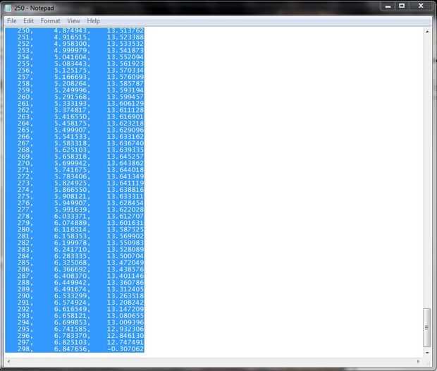 La primera cosa a hacer es abrir el archivo de datos de texto en Bloc de notas. Una vez finalizado esto, seleccione los datos que desea utilizar, ya sea arrastrando el cursor sobre los datos deseados, o colocando el cursor al principio de la selección y luego sosteniendo "Shift" y haciendo clic en el final de la selección.