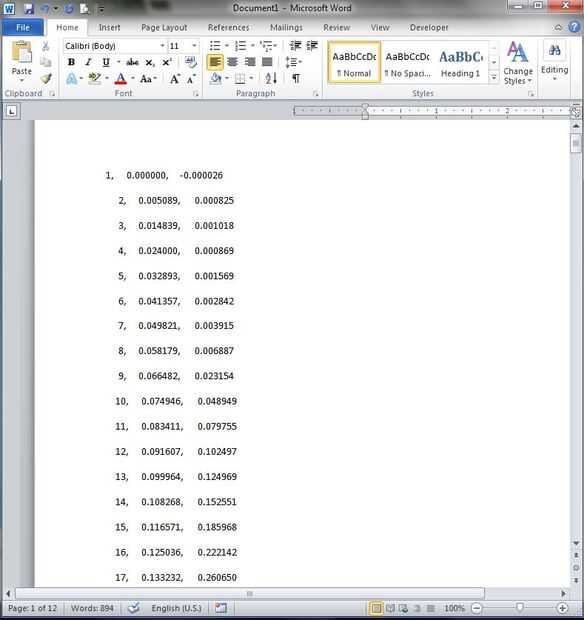 Por lo que ahora deberá utilizar la herramienta de 'Convertir texto a tabla' de Microsoft Word. La primera cosa a hacer es pegar los datos en un documento de word vacío (aún debe estar en el portapapeles, así que no hay necesidad de volver a copiarlo desde el archivo de texto!). Nota de lado, sus números no se vea tan bien alineados como la mía si tiene varias columnas o filas. Sin embargo, la herramienta funcionará.