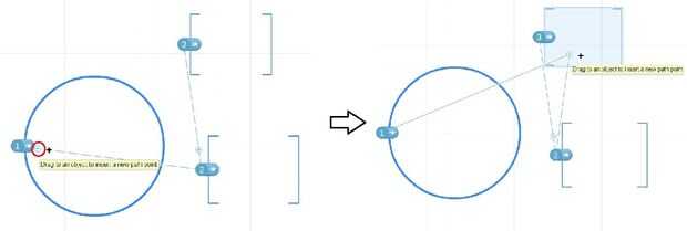 Después de hacer clic en el botón "Editar Path", líneas que conectan cada diapositiva aparecerá; para cambiar el orden de la diapositivas haga clic en el botón numerado al lado de una diapositiva y arrastrarlo hasta una nueva diapositiva. Si desea agregar otra ruta simplemente haga clic en el pequeño "+" círculo botón y arrastrarlo a una nueva diapositiva u objeto para colocarlo en su presentación.
