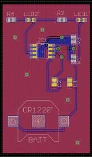 Ya con nuestros componentes correctamente ubicados dentro del cuadro, ahora vamos a enroutarlos. La manera más sencilla sería pinchando sobre el botón AUTO y se enroutará termine. Otra opción sería hacerlo manualmente y para ello habría darle al botón de routear en cada extremo de los componenetes, procediendo de manera similar a como hicimos con el comando WIRE. En de encontrará de si la línea es azul se inferior de la cara; y si es roja, superior de la at.