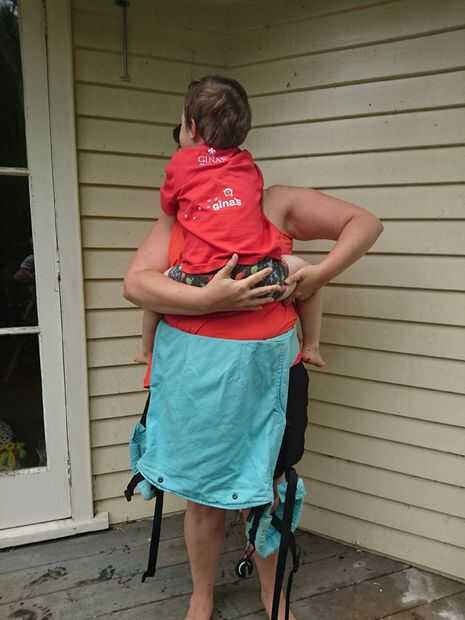 Agarrar al niño y recoger en frente de usted. Levante sus piernas alrededor de su cintura, asegurándose de que son superiores a la banda de la cintura.
