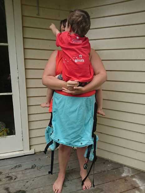 Cómo usar su más viejo niño/niños en edad preescolar en una Tula de niño u otra portador portador suave estructurado (SSC) o hebilla (llevar frontal) (2 / 7 paso)