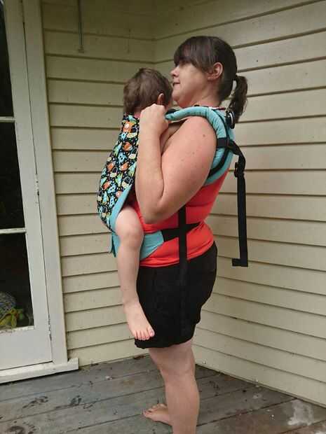 Cómo usar su más viejo niño/niños en edad preescolar en una Tula de niño u otra portador portador suave estructurado (SSC) o hebilla (llevar frontal) (4 / 7 paso)