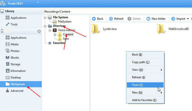 (usted puede instalar cualquier aplicación como grabadora de voz o cualquier aplicación que cree la carpeta interna en sistema de archivos del iphone y usar esa carpeta)