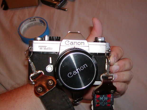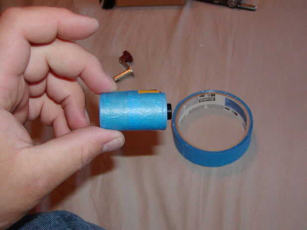 Para la luz del día cargador simplemente tirar de la manivela atrás y abra la puerta exponiendo el recipiente. Una vez abierta la puerta tire la película y el vaso juntos un par de rastras y cortar la película en un ángulo dejando aproximadamente una pulgada o tan sobresale la lata y el cargador. Ahora ya que mis cartuchos son viejos y las tapas no son tan seguras como estaban una vez, me gusta tomar pedazos de cinta y enróllelos alrededor del frasco para que las tapas son más seguras, también la cinta es agradable para escribir qué tipo de película está en el cartucho y otra información útil.