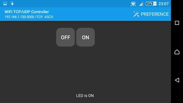 Conectar su teléfono/tablet con la misma red WiFi y descargar la aplicación "WiFi controlador de TCP/UDP" de próximos prototipos. Se puede descargar desde play store (enlace aquí) gratis.