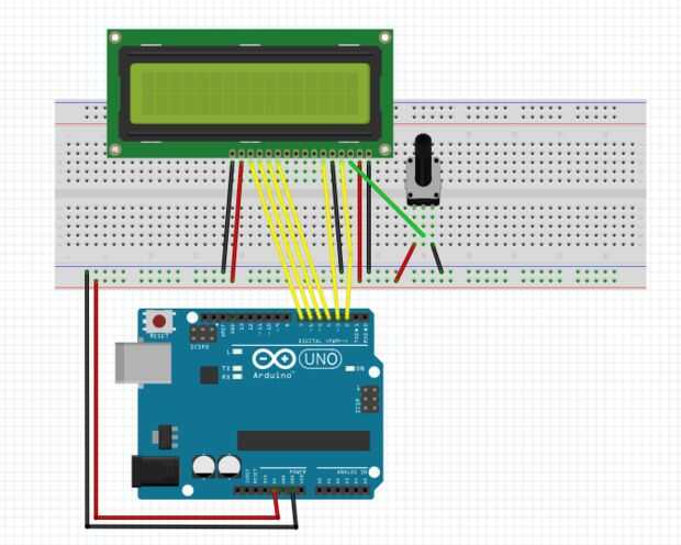 Luego conectar el pin 3 en su pantalla LCD a la patilla central del potenciómetro de 10K.