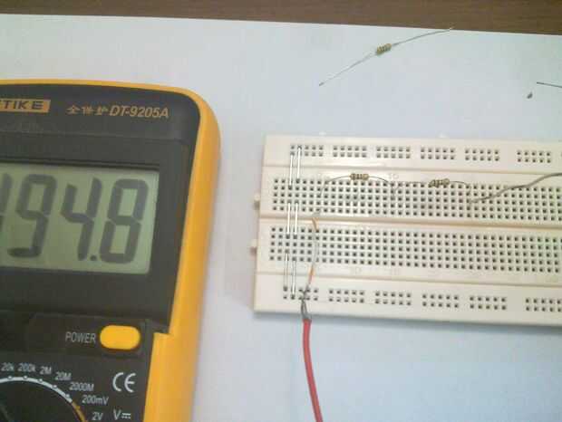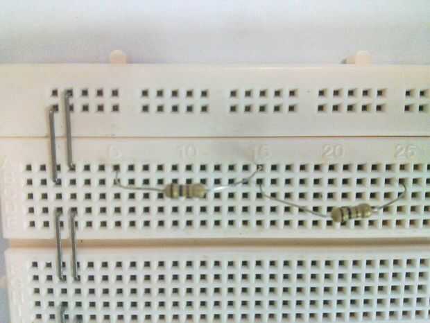 Tome R1 y poner un cable en el A5 y el otro plomo en A15 . R2 y sus conductores a B15 y B25. Ahora son dos resistencias en serie modo