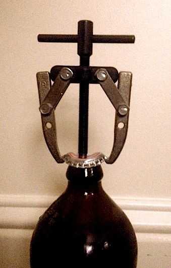 -En primer lugar que el tornillo hacia fuera lo suficiente para que usted puede caber la tapa de la botella entre las mordazas del tirón y el tornillo.