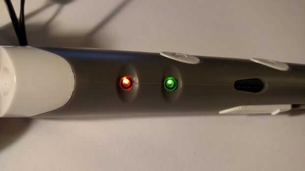 Cuando se conecta energía en su pluma de 3D, se verá una energía naranja claro, se muestra en la imagen. Al principio pensé que esto significaba que estaba calentando y preparándose, mal! Después de poner la energía al dispositivo y ver el LED naranja, presione el botón de avance/extrusión. Esto hará que el LED a también dar vuelta a rojo, indicando que la pluma está calentando. Una vez que ha calentado la pluma, el LED vuelve verde.