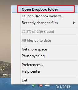 2) haga clic en la opción "Carpeta Dropbox".Nota: