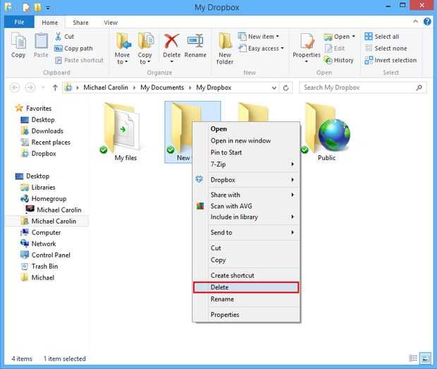 Paso 13: Cómo eliminar una carpeta dentro de tu carpeta de Dropbox