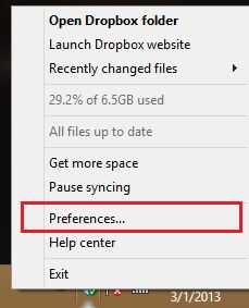 1) haga clic en el icono de Dropbox en la barra de tareas.