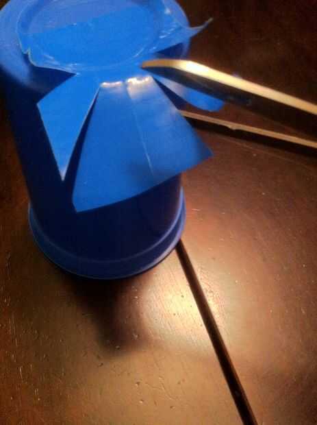 En la parte que sobresale, corte la cinta en secciones aventando hacia fuera del círculo. No cortar los trozos de la cinta.