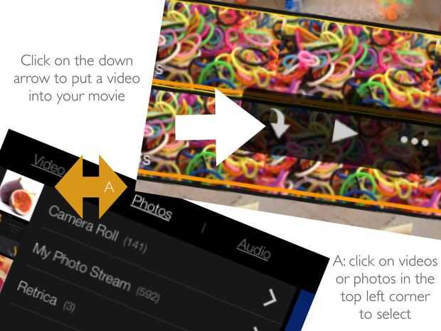 Gire su dispositivo por lo que es hacia los lados. A continuación, haga clic en el botón en la parte superior izquierda esquina (al lado de los videos y audio botón) después de que seleccione una carpeta de fotos, (mis carpetas son rollo de cámara, mi foto stream y retrica) y haga clic en la imagen solicitada.