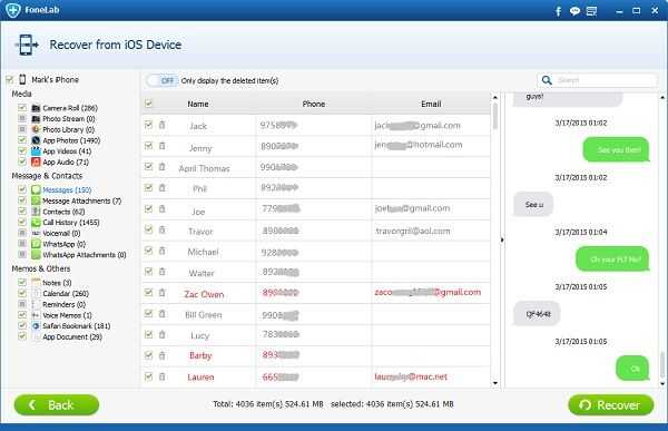 seleccionado, haga clic en recuperar y el software recuperarán fácilmente mensajes de texto borrados de tu.
