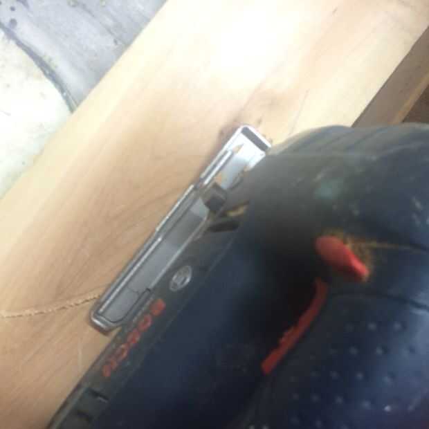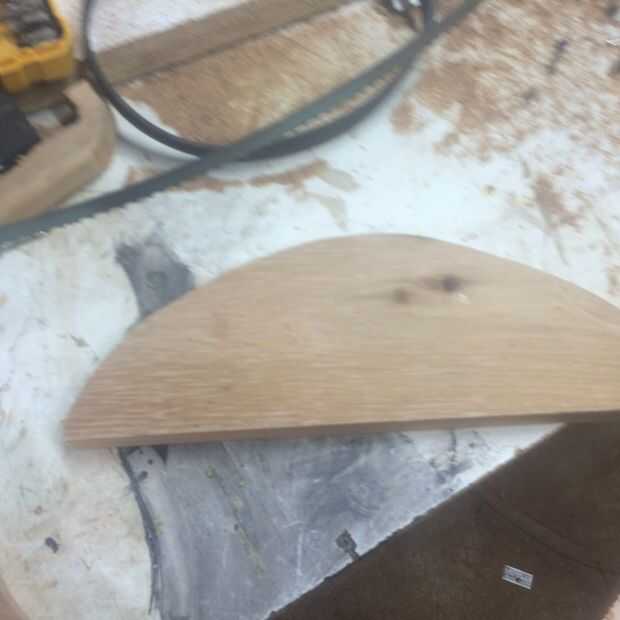 Usar una sierra de calar para cortar la tabla. También puede usar una sierra de cinta.