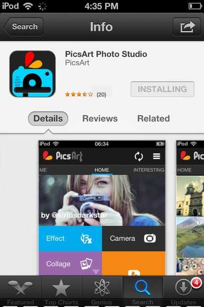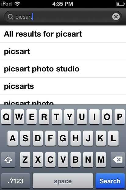 Tipo PicsArt en la barra de búsqueda. Haga clic en la primera aplicación descargar gratis.