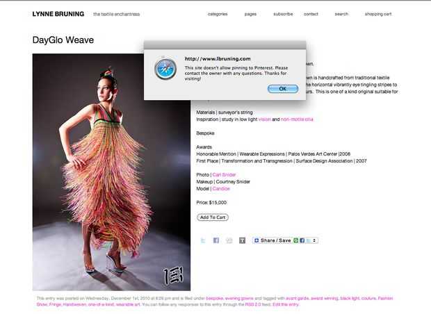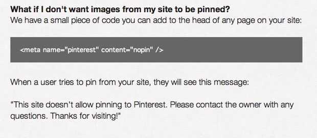 La parte inferior de la Página de ayuda y haga clic en '¿Qué pasa si no quiero imágenes cubrió?'.  Esta sección proporciona un código corto para colocar en la parte superior de su página web.  A partir del 27 de febrero de 2012 el código es < nombre de meta = "pinterest" content no = "pin" / >