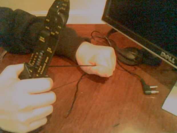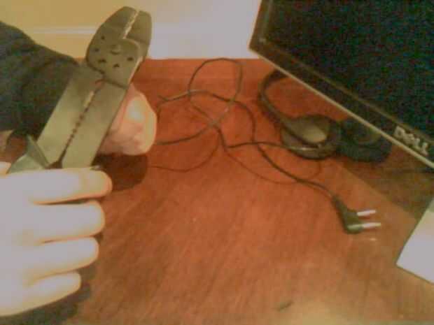 Grab eres el alambre y las strippers, doblar el cable y la mitad cortado en el centro y luego la tira y todos los cables dentro. (Yo loco el error de corte en el gato, que lo arruinó).