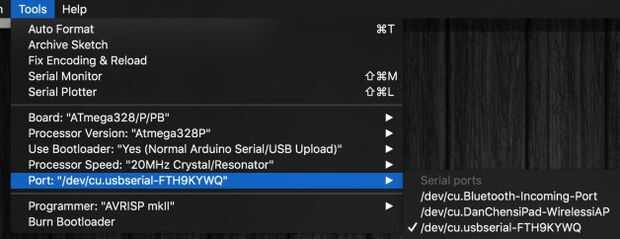 En su computadora, abra Arduino. Asegúrese de que selecciona el puerto serial usb correcto. Abrir Monitor de serie y asegúrese de que la velocidad en baudios velocidad 9600, esto es la tasa de baudios predeterminada. ¿