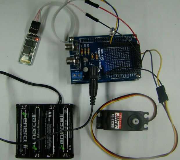 En mi demostración, he conectado un servo a hélice entrada-salida P5 y conectado a las conexiones de corriente y tierra.