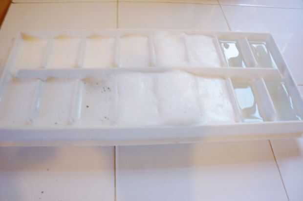 Refrigerar la solución durante unos días o verter el líquido en bandejas de hielo y congelar.