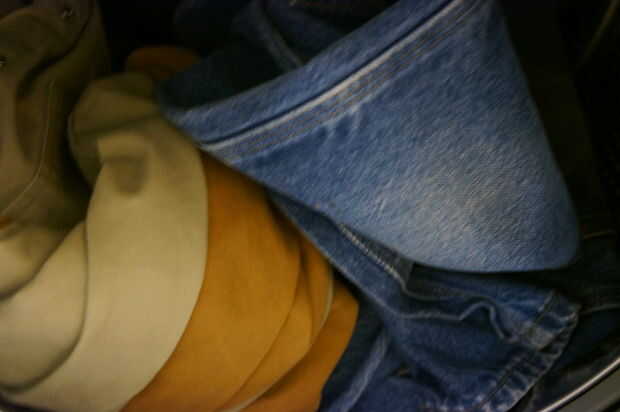 Puse la bolsa en la lavadora primero y luego se cargan los jeans y camisas.
