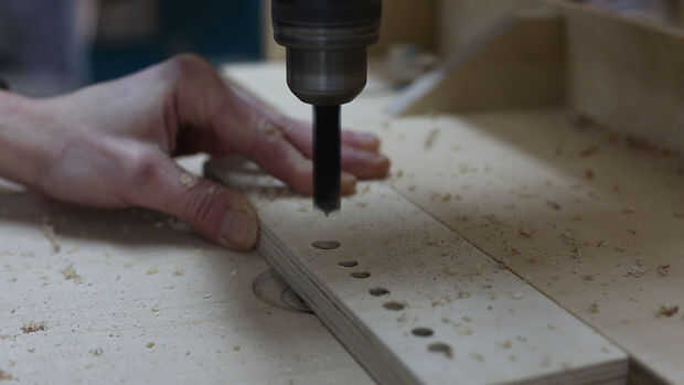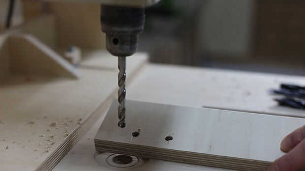 Finalmente estas son las brocas de espiga de CNC. Primer taladro pasante. Entra suave y centrado. Y como usted no puede ver, astillado en todos. Vamos a tratar ahora el agujero oculto. Perfecto!