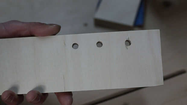 Aquí lo verás mejor, la broca de punto Brad hizo un montón de astillas en la parte posterior. La broca toque lo hizo mucho mejor y la broca CNC hizo un trabajo perfecto.