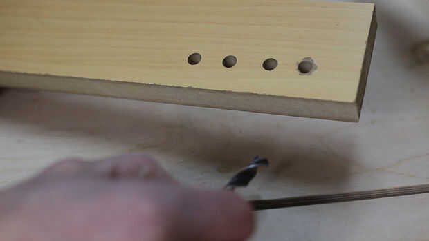 Ahora vamos a hacer la misma prueba en un material más delicado. MDF con la melamina en ambos lados. Con el poco de punto de brad, la parte superior es perfecta, pero hay un poco de astillas en la parte posterior. Con el berbiquí de giro, ya que no tiene un estímulo del centro, el material es ligeramente con cúpula. La parte posterior, está sorprendentemente bien. Finalmente con la broca CNC, parte delantera y trasera son perfectos como se puede ver.