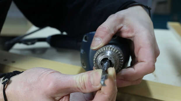 En mi opinión, para un taladro de columna y el uso de estos materiales, esta es la mejor, compra que no son fáciles de encontrar. De hecho que incluso no pude encontrarlos sin la parte plana que tienen para la conexión, tan si usted está planeando utilizar con un mandril como el mío, usted debe tener cuidado de mantener esta parte entre las piernas como lo estoy haciendo aquí.