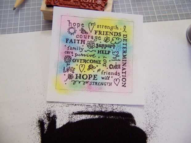 Si no aplicas una buena capa de fijador después de que usted marca este pedazo que se corre el riesgo de tener el polvo de grabación en relieve se pegan a la cartulina en lugares errantes. También corres el mismo riesgo si no dejas el comepletely seco fijador antes de sellado y aplicación de los polvos.