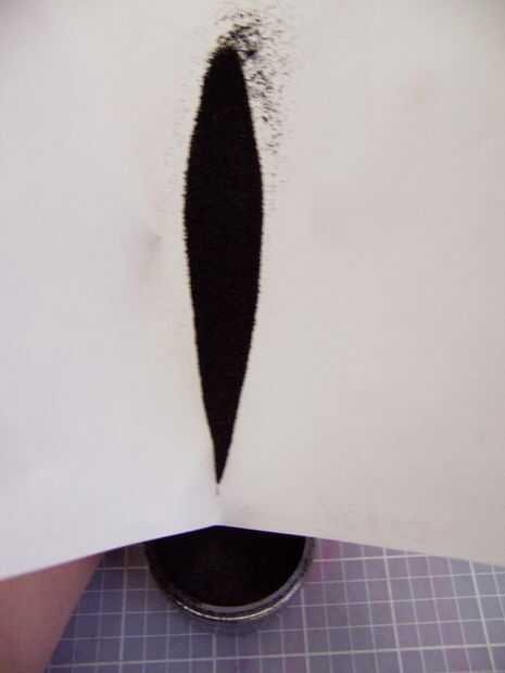 Apartar la pieza estampada y cuidadosamente crear un embudo con el papel de desecho y devolver el exceso de polvo en la jarra.