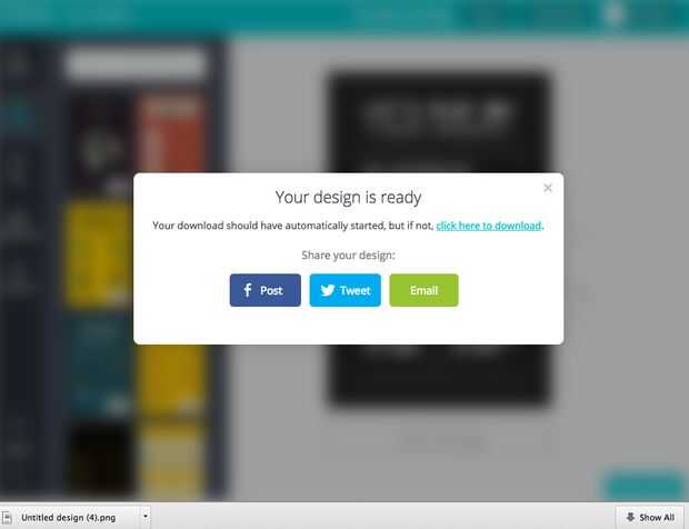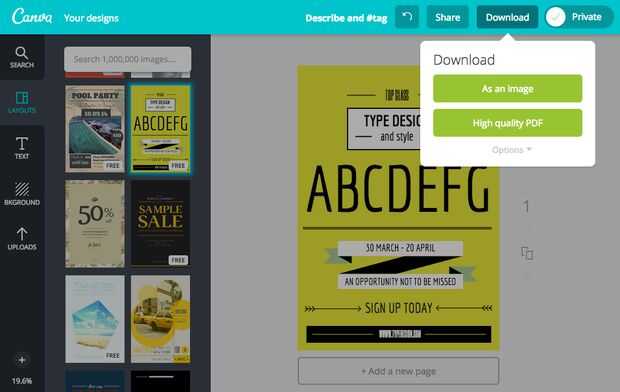 Una vez creado el cartel con toda la información que necesita para promover su clase, como fechas, tiempos, lugares y qué es la clase, estás listo para descargar e imprimir. Haga clic en el botón de descarga. Elija PDF, perfecto para la impresión, espere hasta procesar y guardar en tu carpeta de descargas. Usted puede imprimir el PDF y se puede compartir a tu Twitter y tu Facebook directamente en Canva.