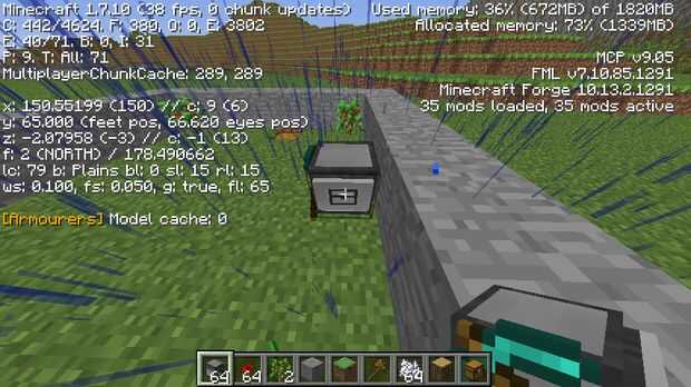 Foto tres Por último, colocar una tortuga equipada con un hacha o pico (pico recomienda porque luego puede reutilizar esta tortuga para otras cosas necesarias). Asegúrese de que usted está mirando al norte! Puede abrir el menú de depuración como se muestra en la pantalla con F3, o a veces FN + F3. También, ignore la horrible lluvia de glitchy.