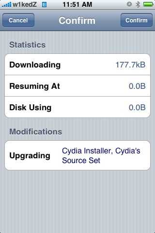 * Pulse la tecla Inicio y luego volver a abrir Cydia para continuar