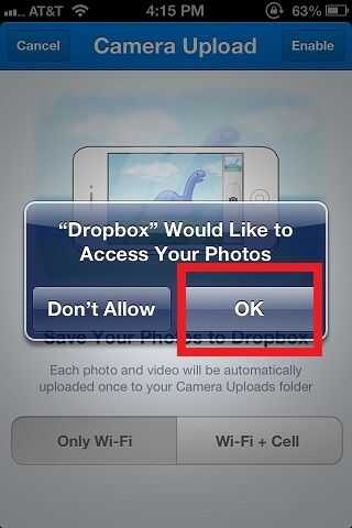 2) una caja será entonces emergente diciendo "Dropbox le da a tus fotos". Haga clic en "Ok."