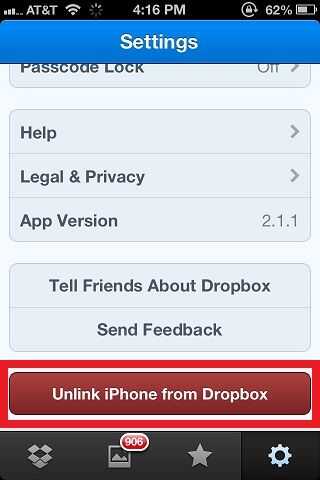 Paso 13: Desvincular tu iPhone desde tu cuenta de Dropbox